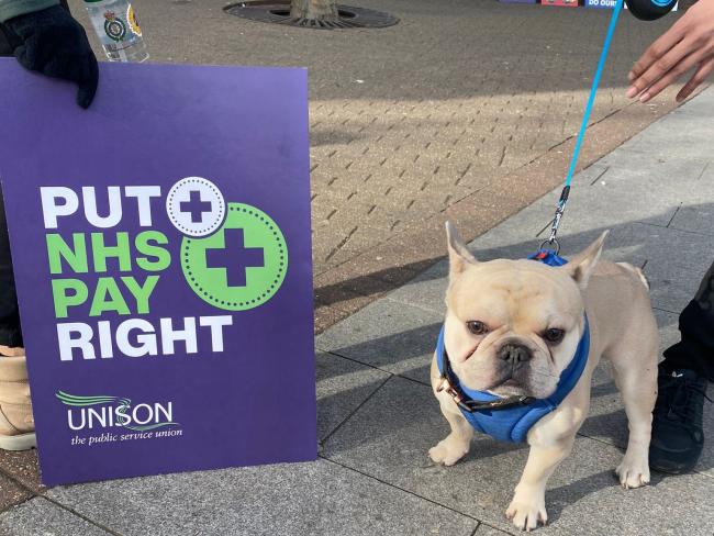 Unison members, and their pets, get the message over. Photo Workers.