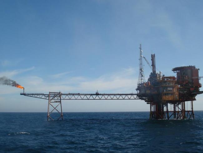 Oil platform in the Montrose Alpha field, in Britain’s sector of the North Sea. Output from Montrose Alpha began in 1976. A major upgrade in 2017 assured oil production up to 2030. Photo Lee181169 (Public Domain).