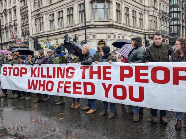Farmers demonstrating in Whitehall, 2024. Photo Workers.